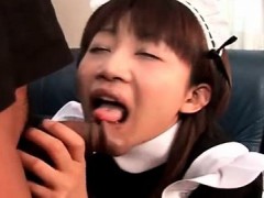 Shy asian maid getting cumshot